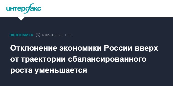 Москва. 6 июня. INTERFAX.RU - Отклонение российской экономики вверх от траектории сбалансированного роста уменьшается, внутренний спрос замедляется, но по-прежнему превышает предложение, отмечает Банк России.