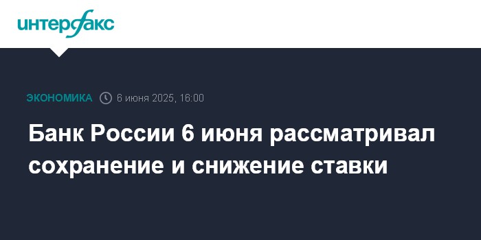 Банк России 6 июня рассматривал сохранение и снижение ставки