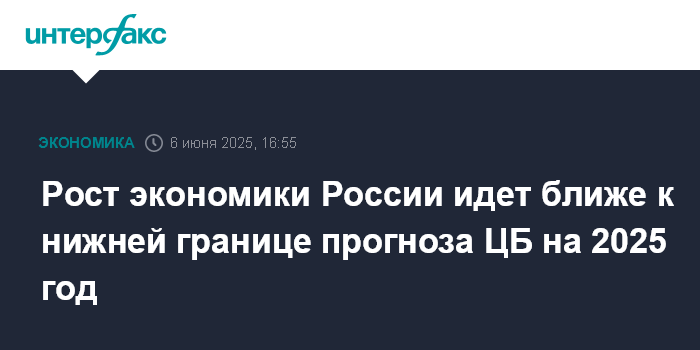 Рост экономики России идет ближе к нижней границе прогноза ЦБ на 2025 год
