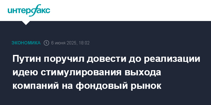 Путин в начале года поручил правительству и Банку России принять дополнительные меры по стимулированию российских акционерных обществ к размещению акций на внутреннем рынке, увязав возможность предоставления таким эмитентам (в том числе с государственным участием) господдержки с их выходом на рынок капитала.