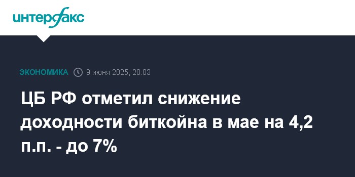 ЦБ РФ отметил снижение доходности биткойна в мае на 4,2 п.п. - до 7%