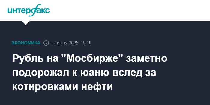 Москва. 10 июня. INTERFAX.RU - На торгах вторника на "Московской бирже" рубль подорожал к юаню перед праздничными выходными днями и на фоне роста котировок нефти четвертую сессию подряд.