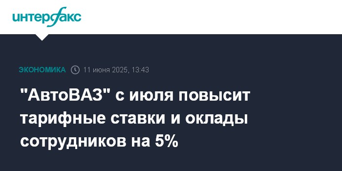 Москва. 11 июня. INTERFAX.RU - АО "АвтоВАЗ" в соответствии с коллективным договором с 1 июля проиндексирует тарифные ставки и оклады сотрудникам на 5%, сообщила компания в телеграм-канале.