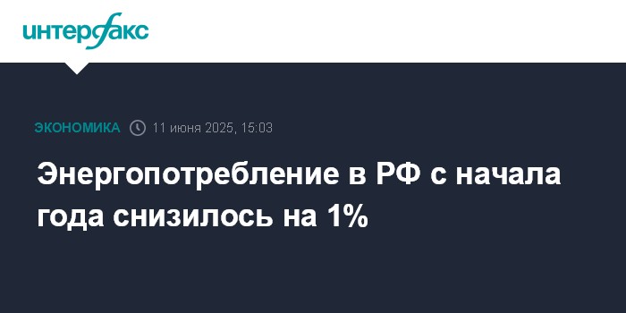 Москва. 11 июня. INTERFAX.RU - Потребление электроэнергии в России с начала этого года снизилось на 1%, сообщил журналистам замминистра энергетики Евгений Грабчак.