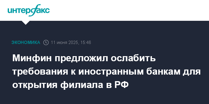 Минфин предложил ослабить требования к иностранным банкам для открытия филиала в РФ