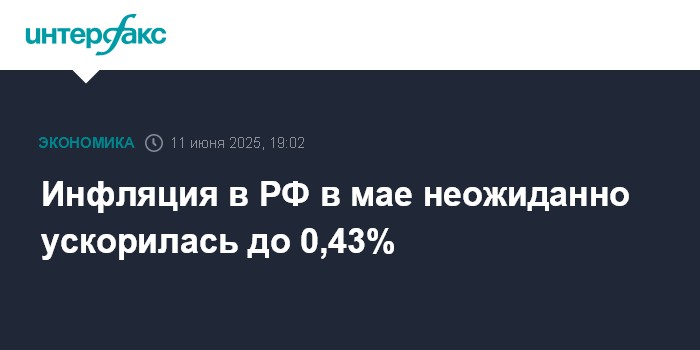 Инфляция в РФ в мае неожиданно ускорилась до 0,43%