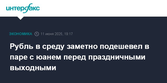 Москва. 11 июня. INTERFAX.RU - Китайский юань уверенно вырос на Московской бирже по итогам торгов в среду. Рубль заметно подешевел в рамках коррекции после роста в предыдущие дни и перед праздничными выходными. В четверг, 12 июня, торги и расчеты на рынках Московской биржи проводиться не будут.
