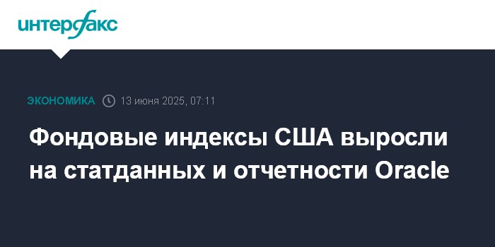 Москва. 13 июня. INTERFAX.RU - Американские фондовые индексы выросли в четверг на статданных и хорошей квартальной отчетности Oracle.