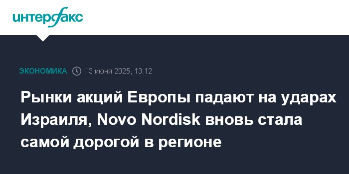 Рынки акций Европы падают на ударах Израиля, Novo Nordisk вновь стала самой дорогой в регионе
