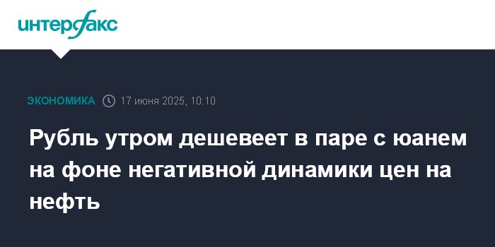 Москва. 17 июня. INTERFAX.RU - Китайский юань подрос на Московской бирже утром во вторник, рубль опустился на фоне дешевеющей нефти.