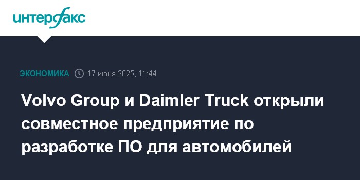 Москва. 17 июня. INTERFAX.RU - Шведский производитель грузовых автомобилей Volvo Group и германская Daimler Truck запустили совместное предприятие Coretura AB по разработке программного обеспечения для коммерческих автомобилей, говорится в сообщении Volvo.