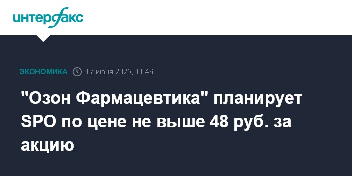 "Озон Фармацевтика" планирует SPO по цене не выше 48 руб. за акцию