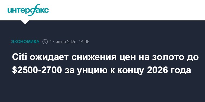 Citi ожидает снижения цен на золото до $2500-2700 за унцию к концу 2026 года