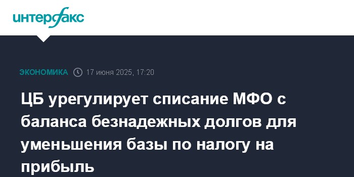 ЦБ урегулирует списание МФО с баланса безнадежных долгов для уменьшения базы по налогу на прибыль