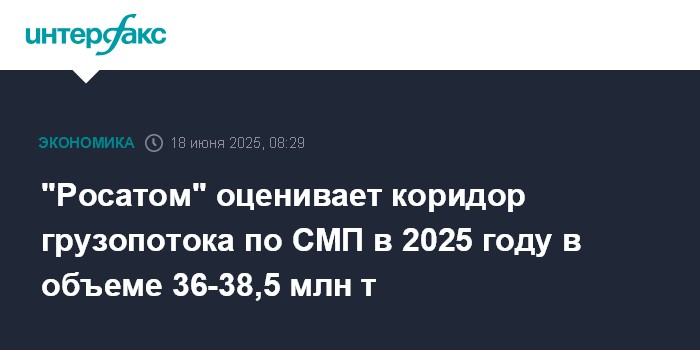 Москва. 18 июня. INTERFAX.RU - "Росатом" предварительно оценивает коридор грузопотока по Северному морскому пути (СМП) в 2025 году в объеме 36-38,5 млн тонн. Об этом в интервью "Интерфаксу" рассказал специальный представитель госкорпорации "Росатом" по Арктике, заместитель председателя Госкомиссии по развитию Арктики Владимир Панов.