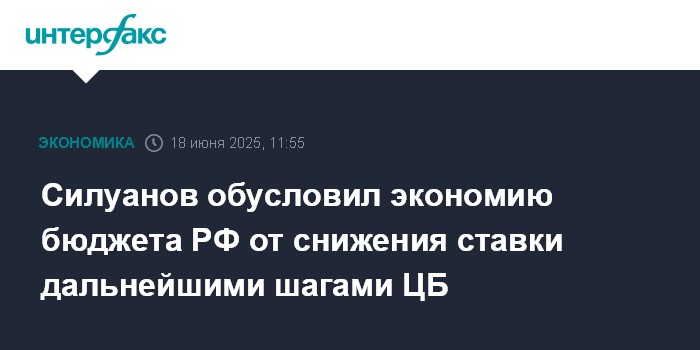 Силуанов обусловил экономию бюджета РФ от снижения ставки дальнейшими шагами ЦБ
