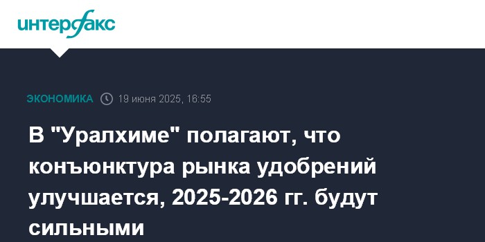 Москва. 19 июня. INTERFAX.RU - Мировой рынок удобрений перешел к фазе роста, 2025-2026 годы будут сильными с точки зрения спроса и цен, ожидает генеральный директор "Уралхима" Дмитрий Коняев.