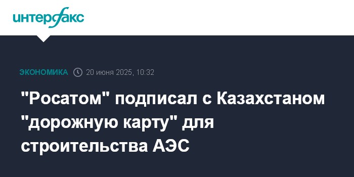 Москва. 20 июня. INTERFAX.RU - Госкорпорация "Росатом" подписала с Казахстаном "дорожную карту" реализации проекта строительства АЭС в стране, передал корреспондент "Интерфакса" с церемонии подписания.