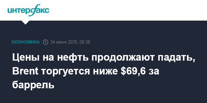 Москва. 24 июня. INTERFAX.RU - Цены на нефть продолжают снижаться во вторник на заявлении президента США Дональда Трампа о достижении договоренности между Израилем и Ираном о полном прекращении огня.