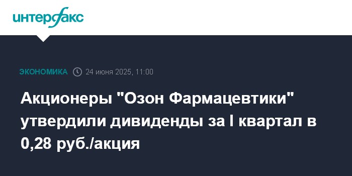 Акционеры "Озон Фармацевтики" утвердили дивиденды за I квартал в 0,28 руб./акция