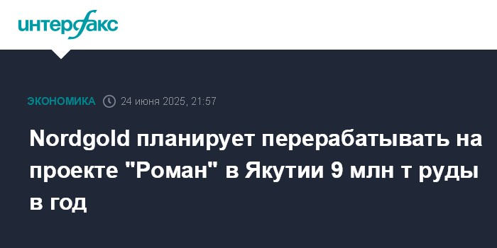 Москва. 24 июня. INTERFAX.RU - Золотодобытчик Nordgold завершил первый этап проектирования перерабатывающего комплекса будущего горно-обогатительного комбината "Роман" в Якутии.
