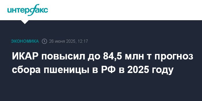 ИКАР повысил до 84,5 млн т прогноз сбора пшеницы в РФ в 2025 году