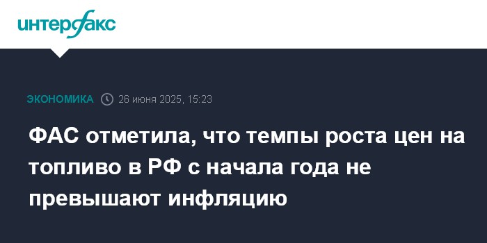 Москва. 26 июня. INTERFAX.RU - Темпы роста цен на топливо с начала текущего года не превышают инфляцию, доложил глава ФАС Максим Шаскольский правительству РФ.
