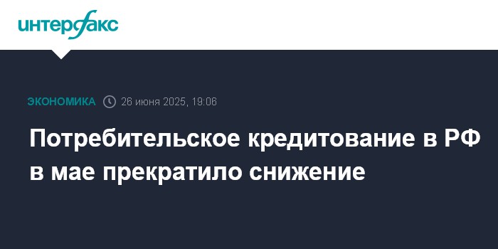 Москва. 26 июня. INTERFAX.RU - Потребительское кредитование в мае прекратило снижение (сокращение на 0,7% в апреле) и показало околонулевую динамику, говорится в материале ЦБ о развитии банковского сектора.