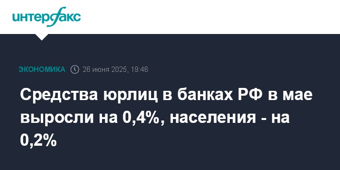 Средства юрлиц в банках РФ в мае выросли на 0,4%, населения - на 0,2%