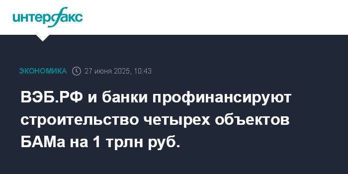 ВЭБ.РФ и банки профинансируют строительство четырех объектов БАМа на 1 трлн руб.