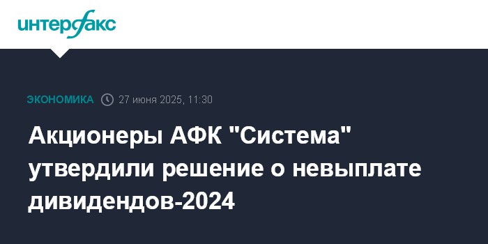 Акционеры АФК "Система" утвердили решение о невыплате дивидендов-2024