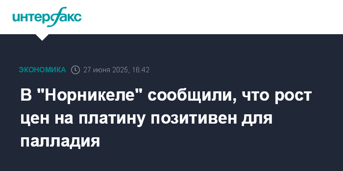 В "Норникеле" сообщили, что рост цен на платину позитивен для палладия