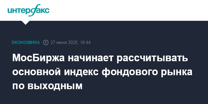 Москва. 27 июня. INTERFAX.RU - Московская биржа 28 июня начинает расчет индекса МосБиржи во время проведения дополнительной торговой сессии выходного дня, сообщается в информации на сайте торговой площадки.