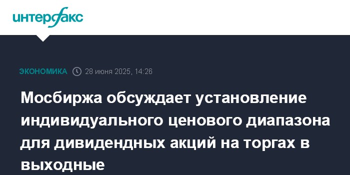 Мосбиржа обсуждает установление индивидуального ценового диапазона для дивидендных акций на торгах в выходные