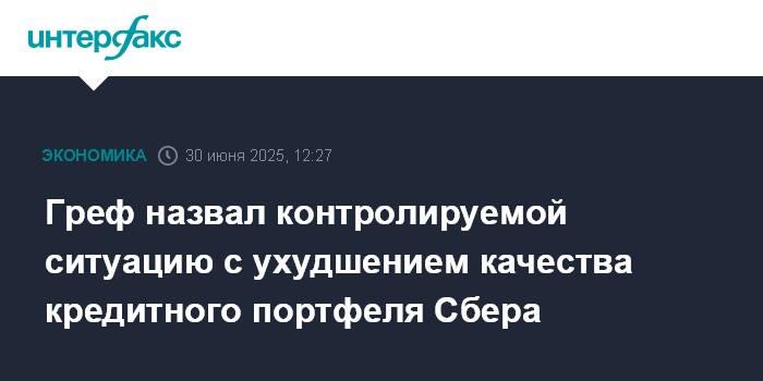 Москва. 30 июня. INTERFAX.RU - Сбербанк видит некоторое ухудшение качества кредитного портфеля, но ситуация вполне контролируемая, заявил его глава Герман Греф.
