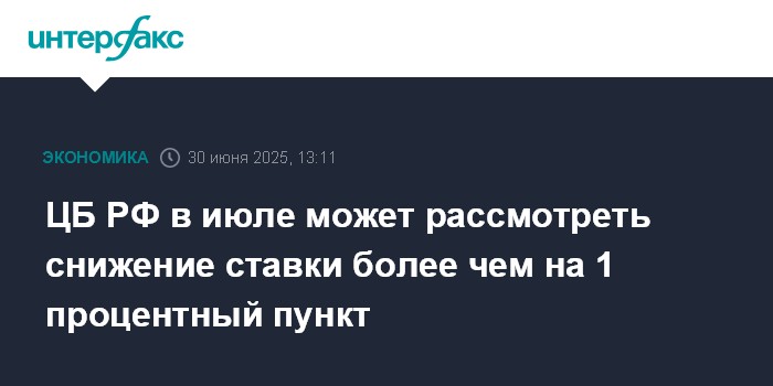ЦБ РФ в июле может рассмотреть снижение ставки более чем на 1 процентный пункт
