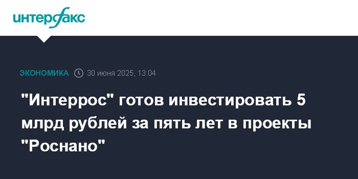 "Интеррос" готов инвестировать 5 млрд рублей за пять лет в проекты "Роснано"