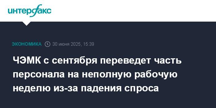"В связи со значительной волатильностью курса валют, сложившимися неблагоприятными условиями на рынках ферросплавной продукции, значительным падением потребительского спроса и в целях обеспечения финансово-экономической устойчивости ЧЭМКа реализуется антикризисная программа, в рамках которой с 1 сентября административный персонал всех структурных подразделений (дневной график работы) переводится на неполную рабочую неделю (4 дня в неделю) до конца 2025 года", - говорится в сообщении.