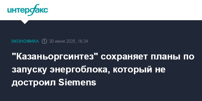 "Казаньоргсинтез" сохраняет планы по запуску энергоблока, который не достроил Siemens