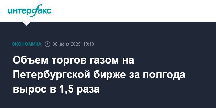 Москва. 30 июня. INTERFAX.RU - Объем торгов газом на Санкт-Петербургской международной товарно-сырьевой бирже в июне 2025 года составил 1,234 млрд кубометров, что более чем в два раза больше, чем годом ранее (573 млн куб. м), свидетельствуют данные площадки.