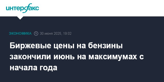 Биржевые цены на бензины закончили июнь на максимумах с начала года