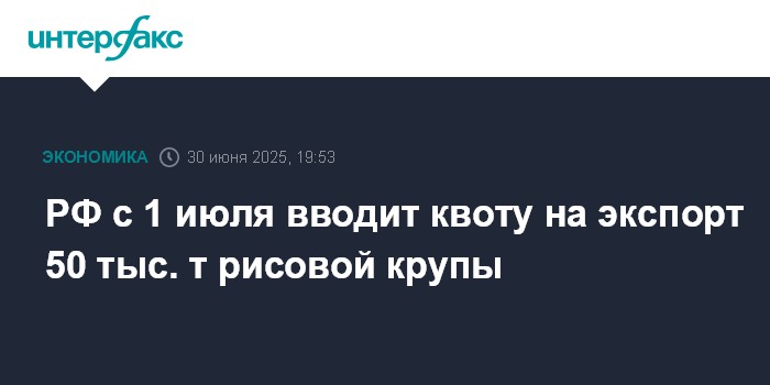 Экспорт рисовой крупы был запрещен по 30 июня 2025 года включительно.