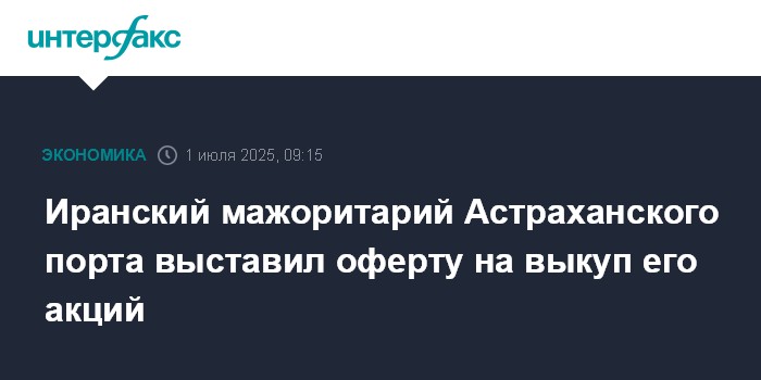 Иранский мажоритарий Астраханского порта выставил оферту на выкуп его акций