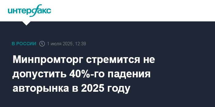 Москва. 1 июля. INTERFAX.RU - Минпромторг работает над мерами поддержки автомобильной промышленности, чтобы избежать по итогам 2025 года 40%-го падения рынка, заявил глава ведомства Антон Алиханов на заседании комитета Совета Федерации по экономической политике.