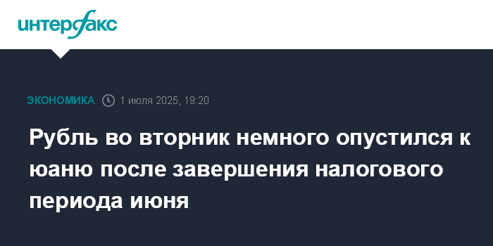 Рубль во вторник немного опустился к юаню после завершения налогового периода июня