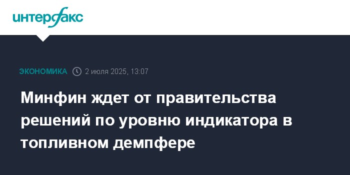 Минфин ждет от правительства решений по уровню индикатора в топливном демпфере