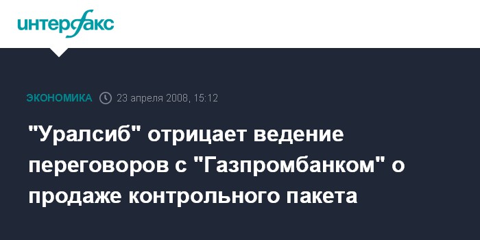 Москва. 23 апреля. INTERFAX.RU - Банк "Уралсиб" отрицает ведение переговоров с "Газпромбанком" по поводу продажи контрольного пакета.