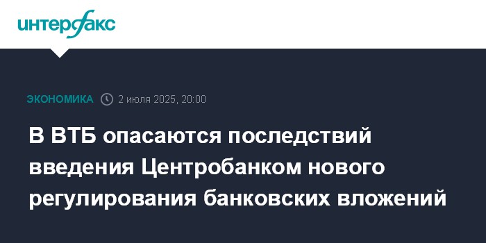 В ВТБ опасаются последствий введения Центробанком нового регулирования банковских вложений