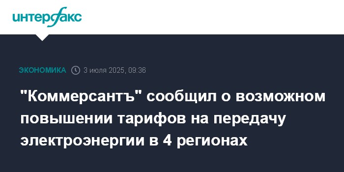 "Коммерсантъ" сообщил о возможном повышении тарифов на передачу электроэнергии в 4 регионах