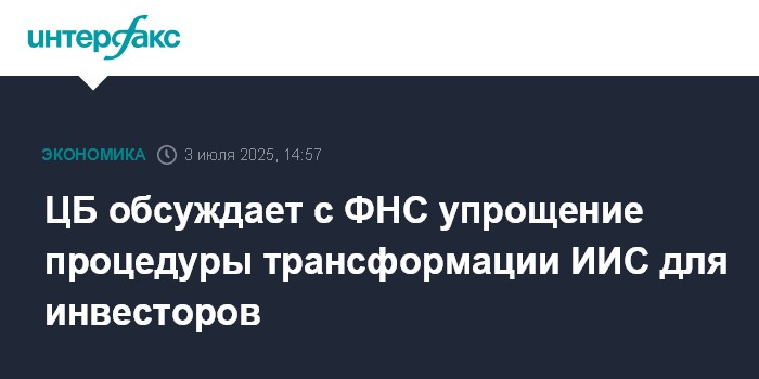 Москва. 3 июля. INTERFAX.RU - Банк России обсуждает с Федеральной налоговой службой (ФНС) изменение порядка уведомления о конвертации индивидуальных инвестиционных счетов (ИИС) первого и второго типа в ИИС-3, чтобы сделать процесс проще для инвесторов, заявил зампред ЦБ Филипп Габуния.